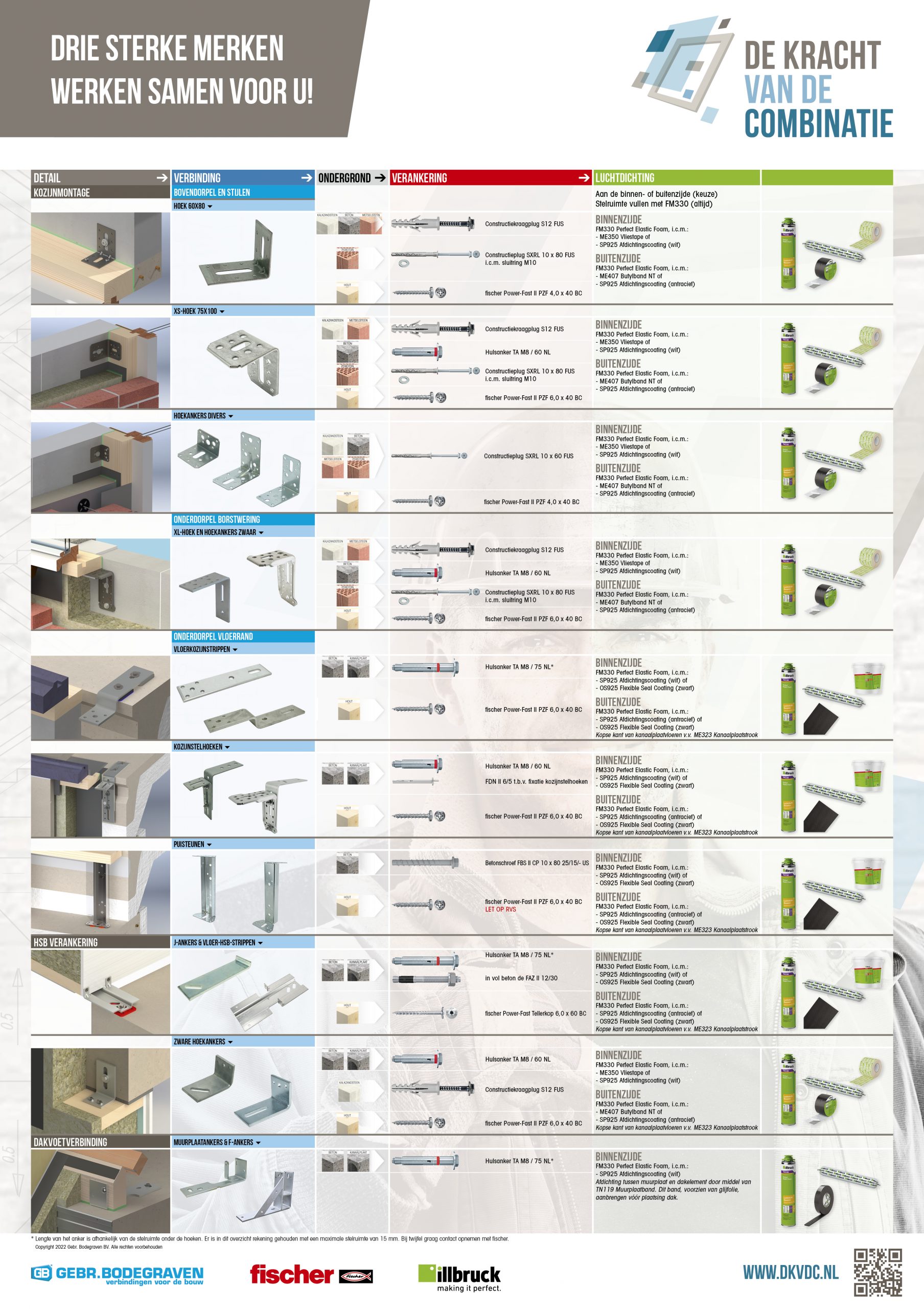 Sinds 2013 geven Gebr. Bodegraven, fischer Benelux en CPG Nederland (illbruck) gezamenlijk advies. Bij wie van de drie u ook advies aanvraagt: u krijgt er de kennis van de andere partijen bij.